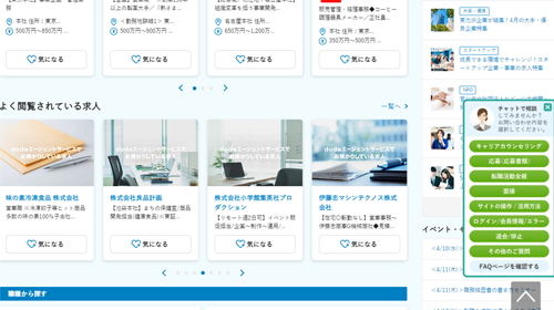 Webエンジニア転職・IT転職、医薬・メディカル業界転職などの求人情報専用ページがあり、職種を限定した求人情報も充実。また、管理職やハイクラスの転職・求人情報専用ページも用意しています。そのため、職種やキャリア、エリアなど、細かいニーズに応じた転職が可能です。